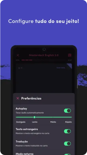 Com nosso app de memorização com Flash Cards, você pode aprender inglês em poucos minutos de estudos diários. Em qualquer lugar, a qualquer momento e de graça.